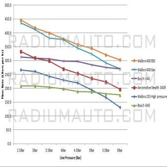 med stora spridare når man lamda target med extra stor duty cykel men grund trycket minskar och där flödar pumparna mycket mer som man ser i dina flöden vid 60 psi som exempel. man ser det tydligt då man loggar soppa trycket i bränsle skenen som jag gör i min dyno.