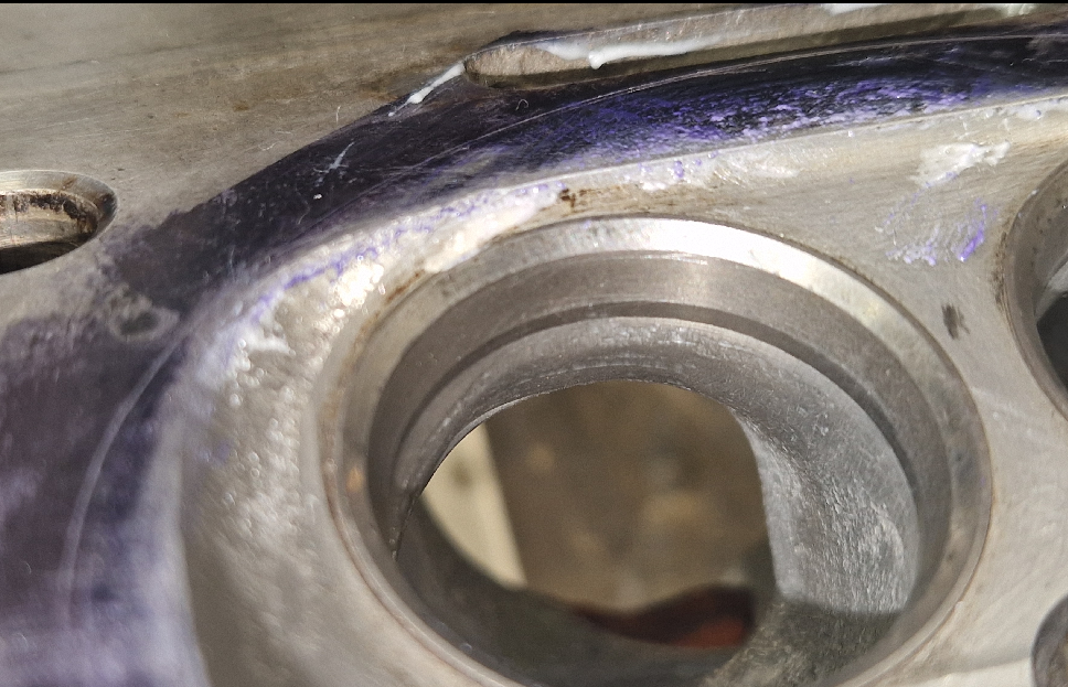 Sedan har jag försökt låta bli mellanväggen på insugssidan, men lyckades tyvärr gör den lite bredare i området mellan ventilskaft och själva brunnen, vilket direkt skapade ett visslande ljud och att jag inte får ut så mycket flöde som jag kan. Provar jag med en svetstråd i det området så ökar flödet och visslet försvinner.