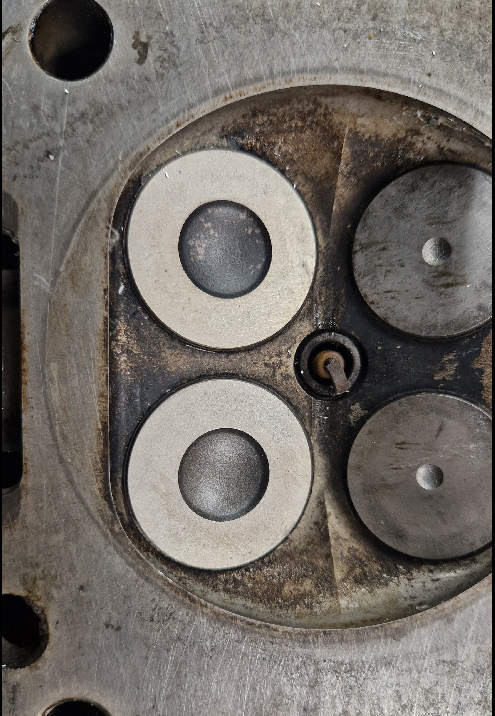 Sätesvinklarna är inte heller klara. I Insuget så har jag använt ett 75 graders stål men det som ska vara mot förbränningsrum samt avgaskanalen väntar jag på fräsar till, då mina huvuden var lite för stora för att passa. Tanken är 30-45-75 i vinklarna. Ventilerna som jag flödat med är dock slipade. Insugsventilen har en 30 gradig slipning på baksidan mot skaftet och avgasventilen har motsvarande 60 grader på framsidan som är tillslipad.
